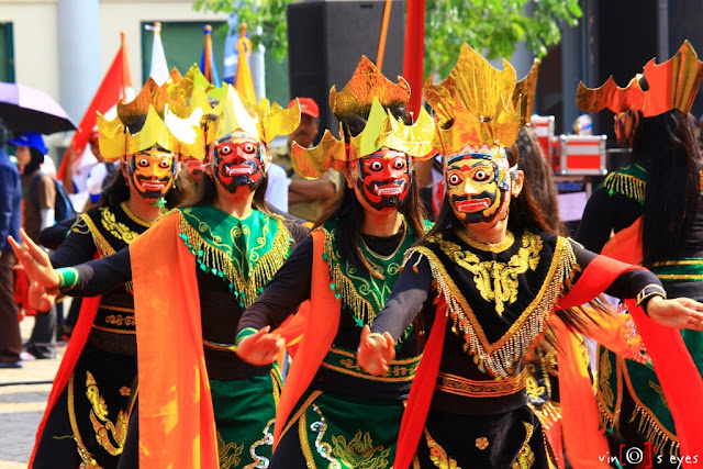 peserta tampil dengan topeng2 & tata busana yang sederhana, meski